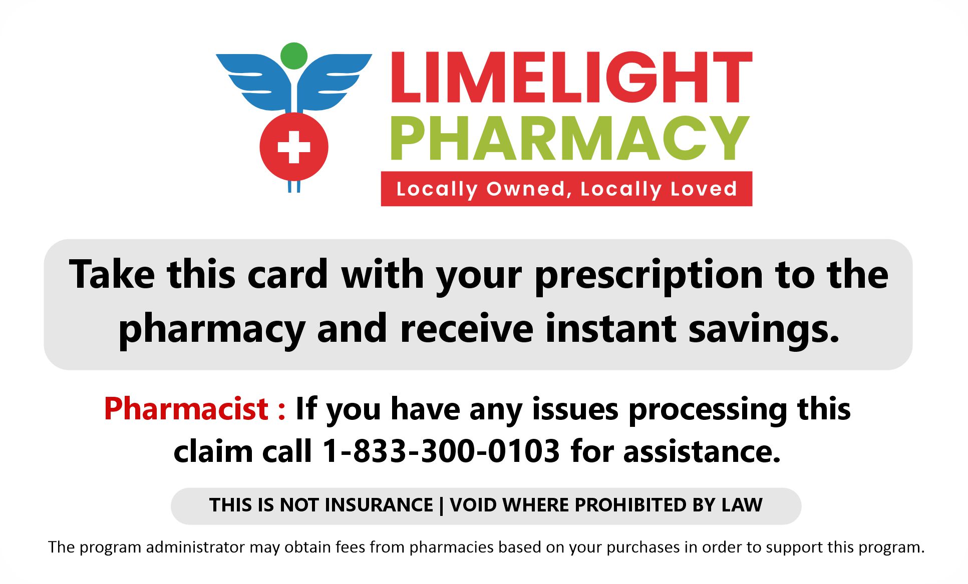 The Limelight Pharmacy medication savings program provides discounts of up to 87% off retail prices at all major chains and most independent pharmacies nationwide.
